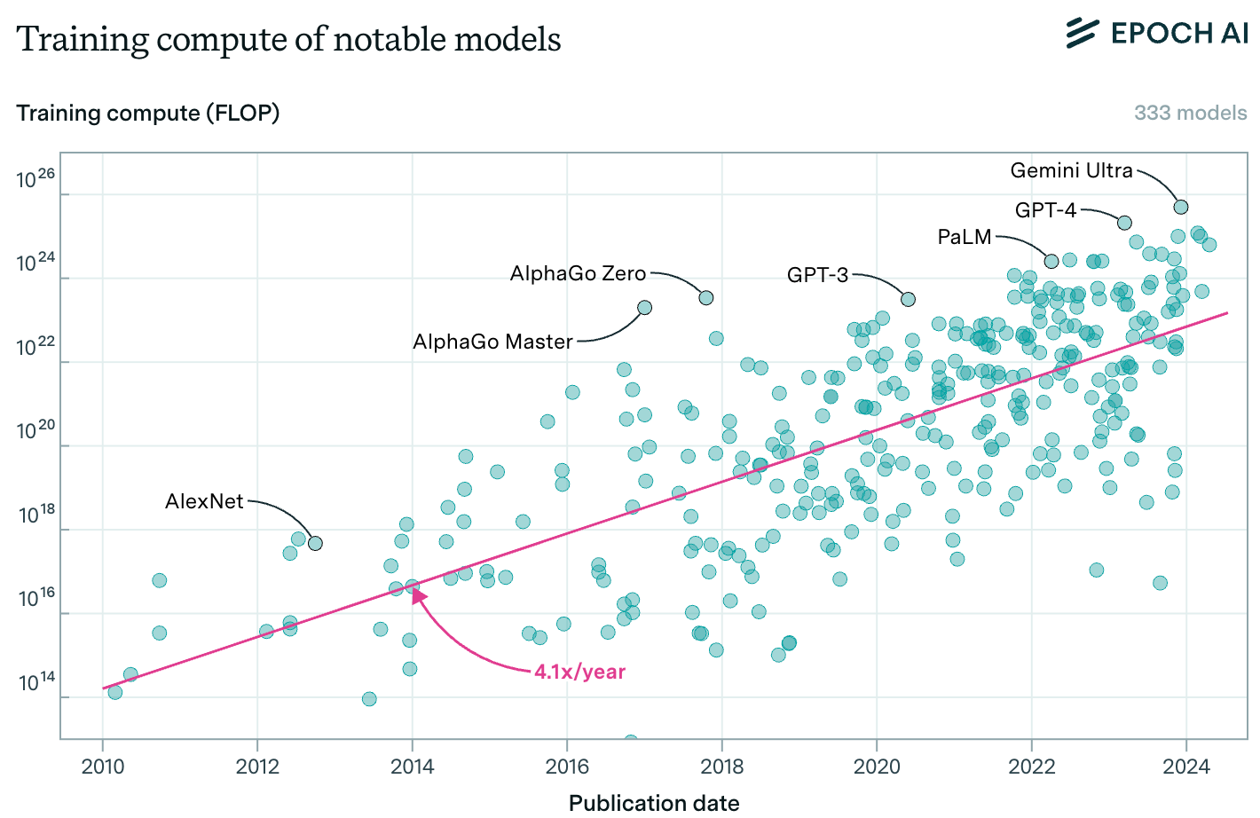 Sevilla, J. and Roldán, E., "Training Compute of Frontier AI Models Grows by 4-5x Per Year," Epoch AI, May 28, 2024.